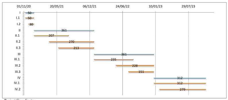 Here we present the work plan of the project with an estimation of time achievement for each objective. The timetable of deployment plan of the project was constructed following the Contracting Authority requests.