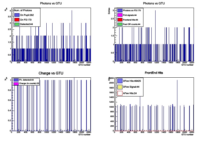 In urma implementarii modificiarilor in ESAF (Euso Simulation and Analysis Framework - Pachet de Simulare si Analiza pentru Euso) au fost efectuate o serie de simulari pentru evaluarea performantelor programului. Rezultatele pot fi vazute in Figurile de mai jos.